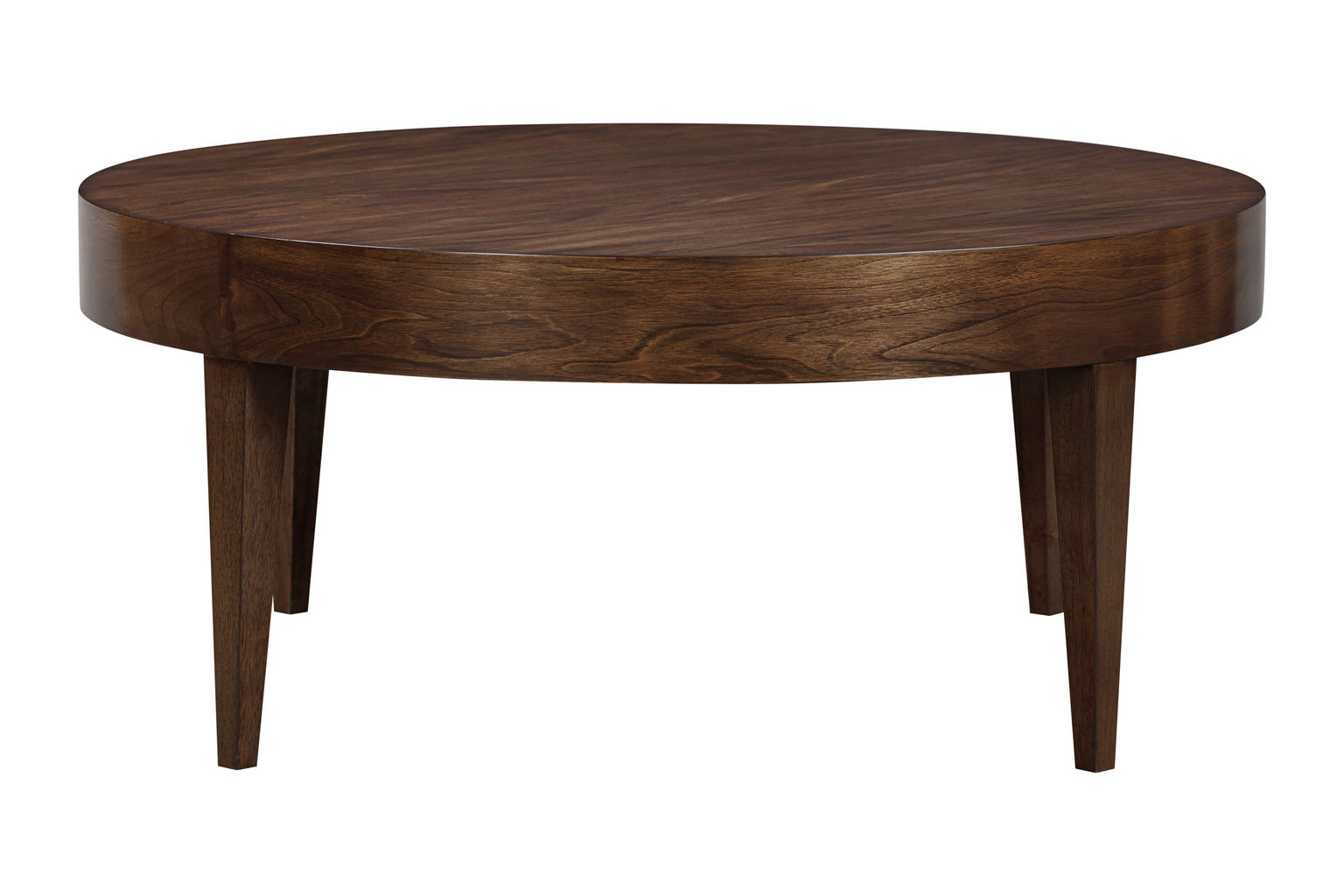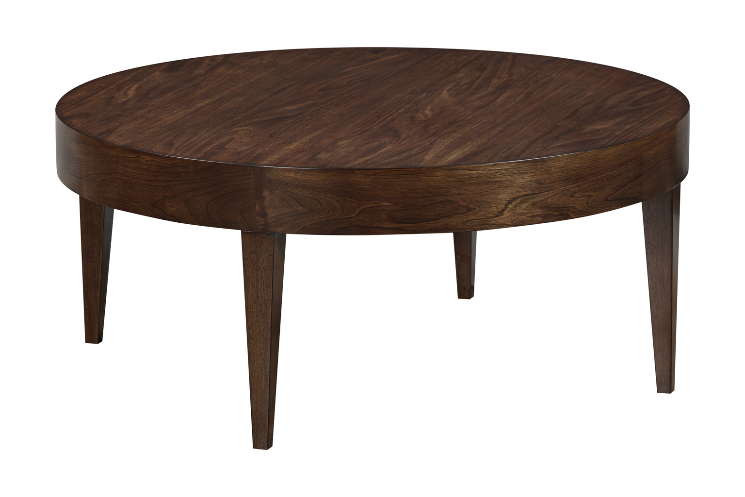 Classic, straight lines and tapered legs describe the Chantal Round Cocktail Table. Rich Swirl Walnut veneers showcase Nature's brilliance. Finished... Show more