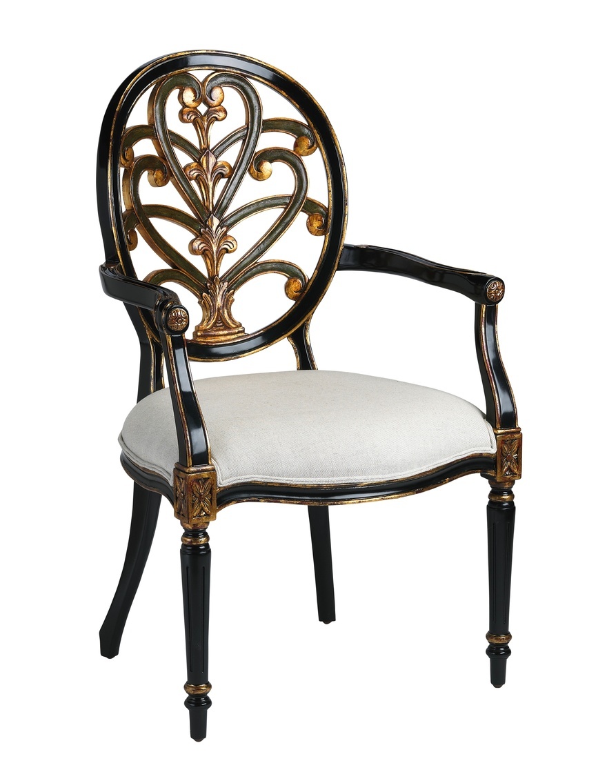 This classic honeysuckle design hand-carved mahogany arm chair is hand-painted and upholstered with Euro Linen fabric. COM service is also... Show more