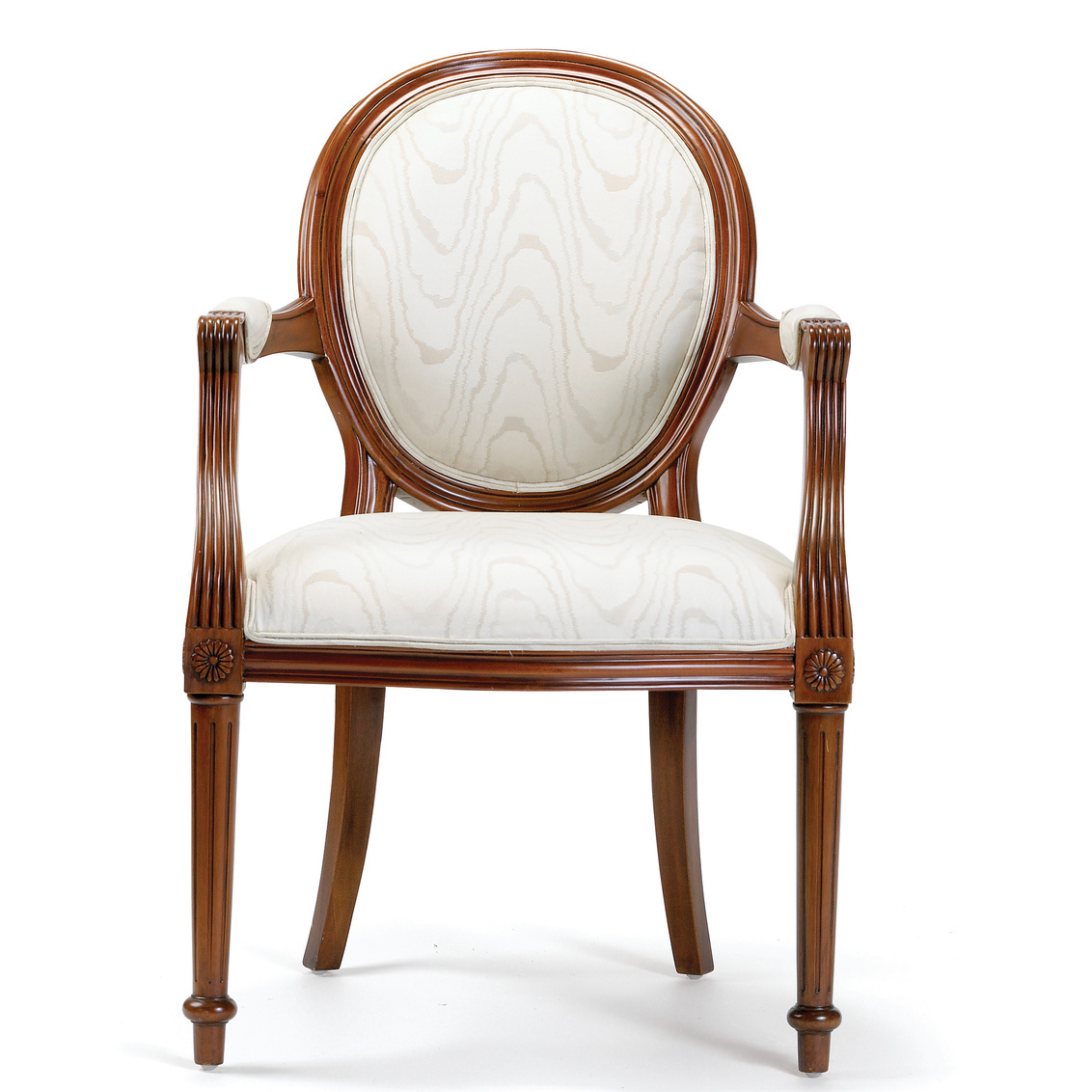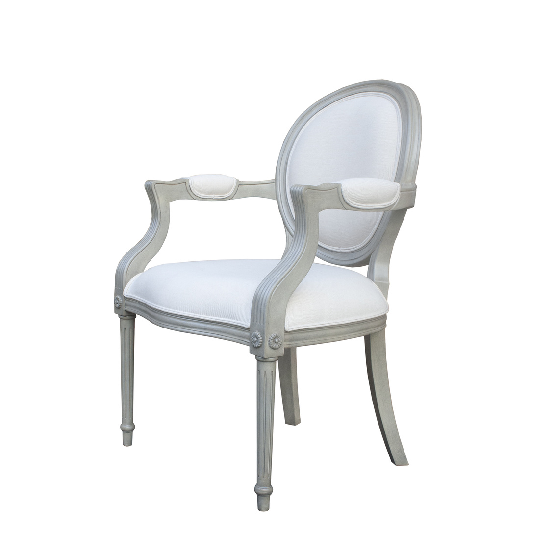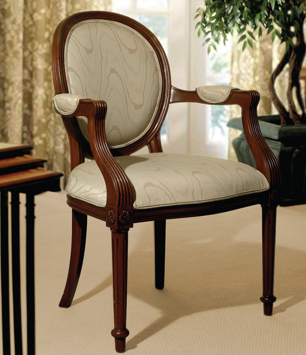The Versailles Arm Chair carries the traditional French silhouette with upholstered oval back and tight seat with welting. It also... Show more