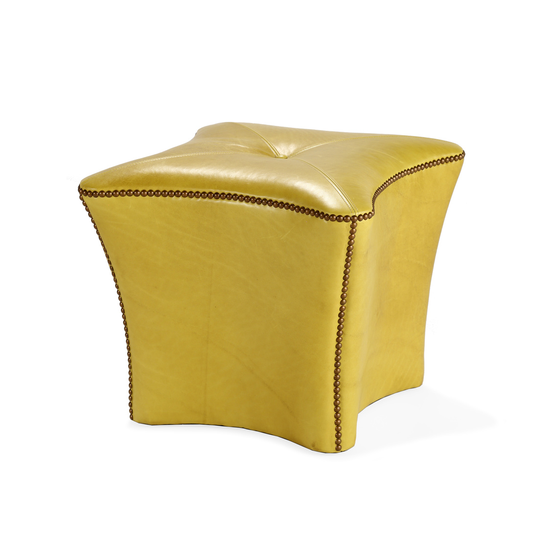 The Lance Ottoman has a square base and shaped corners all pulled together by a single button in the tufted... Show more
