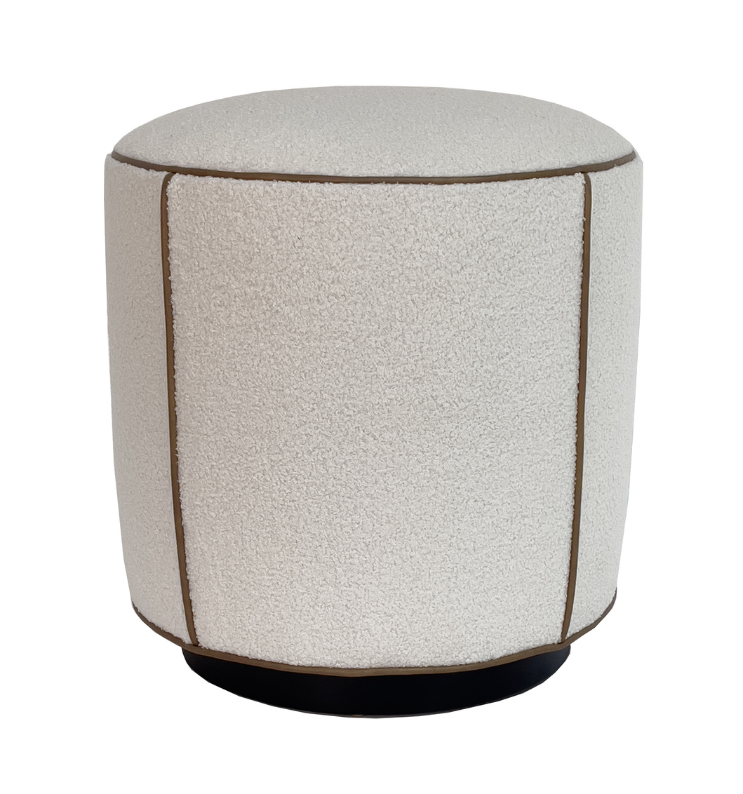 The Wellington Ottoman/Stool has a cylindrical body with a dignified buttoned-up look. Change the leather to fabric for a more... Show more