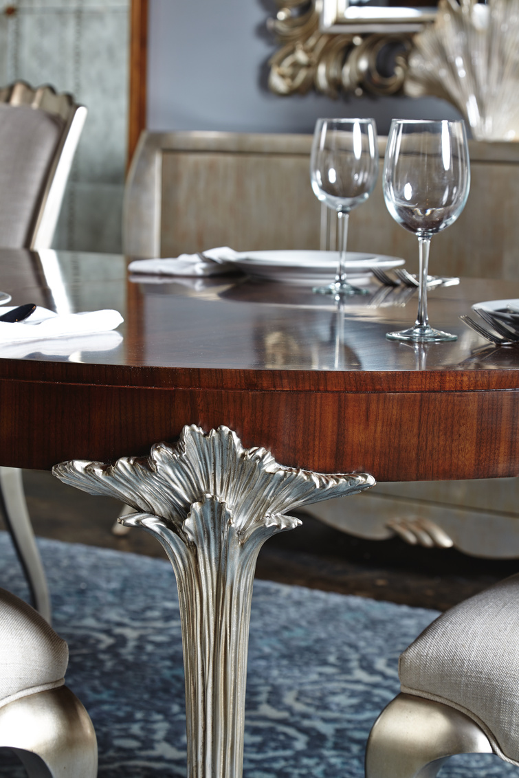 A cresting ocean wave is captured in the hand-carved legs of the Oceana Dining Table. The tabletop is finished in... Show more