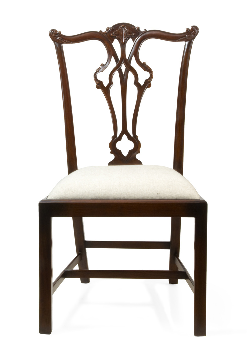 Elegantly hand-carved from mahogany, this Irish Chippendale draws additional strength from stretchers on all four legs.